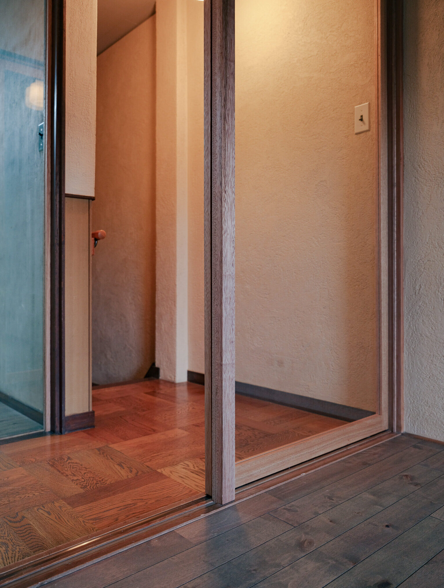そして本物件と同時期に施主のご実家の解体が重なったため、思い入れのある建具や金物、照明器具などを選定し、移設した。